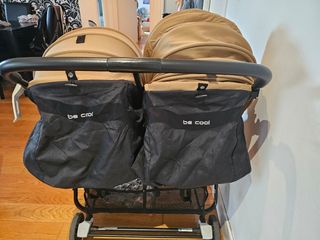 Silla gemelar . Plegable , ocupa poco espacio , fácil de transportar y muy cómoda para manejar .con plástico para la lluvia con ventana para asomar la cabeza original de la marca Bee Coo. Con 1 coloca botellas o biberon para tener a mano . Solo con manchas en los cojines por los pies . Apta para avion . No hago envíos.