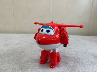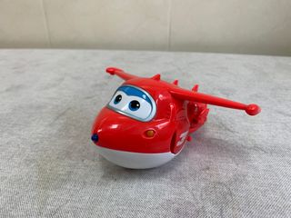 Avión de juguete Super Wings de color rojo. - Diseño inspirado en el personaje. - Alas rojas. - Ventanas azules en la cabina.