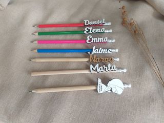 ✏Lápiz personalizado con nombre. 📢1,80€ unidad. Pedido mínimo 10 unidades. Se puede elegir el color del lápiz (aparecen los colores en la foto) Se puede elegir el color del nombre( blanco o marrón) Ideal como detalle de cumpleaños, bautizos, comuniones, bodas.... Se hacen envios o recogida en mano. #cumple, bautizo, comunión, boda, regalo, personalizar...