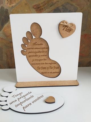 Cuadro hecho en madera DM. Se puede personalizar con los nombres que querais o poner la frase en singular. Una idea muy original para pedir que sean los padrinos o madrinas. Tiene base para que se sujete de pie. Mide 19centímetros de largo x 20cm de alto. Se hacen envios o recogida en mano. padrino, madrina, regalo , bebé, nacimiento, bautizo, comunión