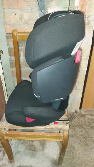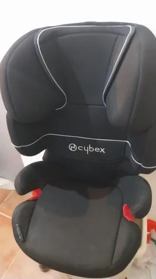 Silla de coche Cybex en color negro, con sistema de anclaje Isofix. - Diseño ergonómico. - Acolchado confortable. - Detalles en blanco y rojo.