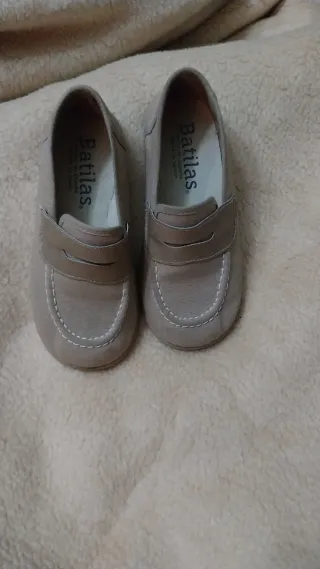 Zapatos tipo mocasín para niño de la marca Batilas. - Color beige. - Detalle de antifaz. - Costuras decorativas.