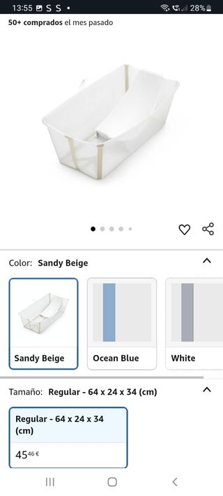 Bañera para bebé en color Sandy Beige. - Diseño plegable y compacto. - Ideal para espacios reducidos. - Material resistente y fácil de limpiar.
