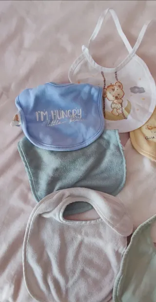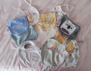 Lote de baberos de tela de muselina de Shein. Son suaves y cómodos. Cierre de broche. Diseño ligero y transpirable. Con poco uso y sin defectos. Hago descuento por lote. 2 × 1 prendas de bebé de 1€