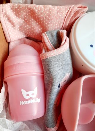Preciosa cesta canastilla de regalo con muchos accesorios para bebé. Todo nuevo a estrenar. Incluye: termo 500ml, 3 boles con tapa, 1 biberón con dosificador, 2 baberos de algodón, bol eco con ventosa de silicona alimentaria y una cuchara de silicona con mango de madera. TODO EN CAJA RWGALO. Incluye lamina. PRECIO NORMAL: 80€ ✨️🟣 EN OFERTA: 40€ HAGO ENVÍOS 📦