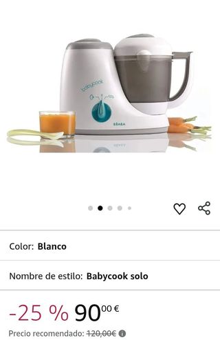 BÉABA Babycook Solo, Robot de cocina infantil 4 en 1, Tritura, cocina y cuece al vapor, Cocción rápida, Comida casera y deliciosa para bebés y niños, Color Gris, 1 Unidad (Paquete de 1) MarcaBÉABA Función especialApagado automático ColorGris Vataje400 vatios MaterialPlástico Usos recomendados para el productoCocinar al vapor, Revolver, Descongelar, Calentar PROCESADOR DE ALIMENTOS CUATRO EN UNO: cocina al vapor, mezcla, descongela, calienta, capacidad XL COCCIÓN RÁPIDA: cocción rápida al vapor en 15 minutos: conserva los sabores y las vitaminas de los alimentos GRAN CAPACIDAD: tazón XL de 1100 ml, óptimo para preparar grande