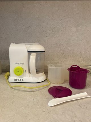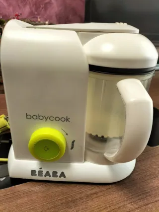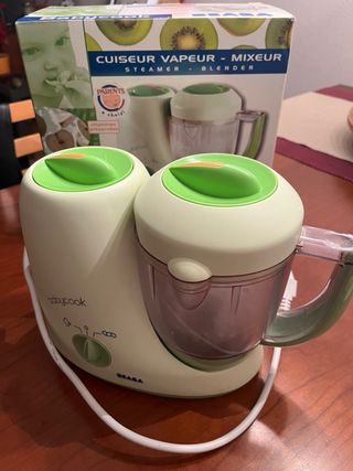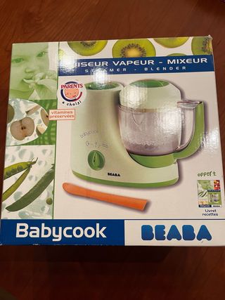 Babycook Beaba, ideal para preparar la comida de tu bebé al vapor y luego triturarla. - Incluye vaporera y batidora. - Diseñado para facilitar la alimentación infantil. - Marca: Beaba. - Modelo: Babycook.