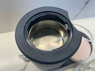 Robot de cocina Beaba Babycook en color azul marino y detalles en rosa. - Diseño moderno y compacto. - Tapa superior en color rosa. - Asa lateral en color blanco y rosa.