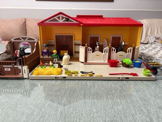 Establo de caballos Playmobil con accesorios. - Incluye dos caballos, figuras y accesorios. - Establo con puertas y establos. - Ideal para coleccionistas y juego. El set está completo, nuevo vale 42€ Tengo mas sets en el perfil, puedo hacer algun lote
