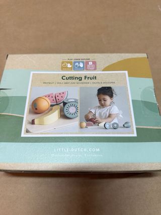 Set de juego de madera para cortar fruta, ideal para los más pequeños. Incluye varios tipos de fruta y accesorios. - Marca: Little Dutch. - Material: Madera. - Edad recomendada: 2+ años.