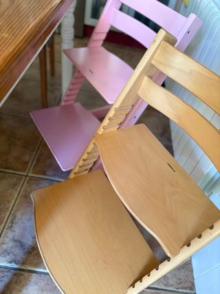 Trona evolutiva Stokke, diseñada para crecer con tu hijo. - Fabricada en madera. - Color rosa y natural.