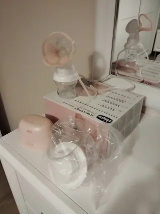 Sacaleches de la marca Chicco. - Color rosa y blanco. - Incluye motor y embudo.
