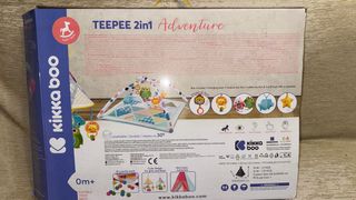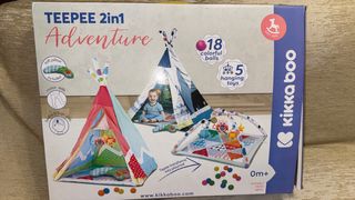 Tienda de campaña Adventure de Kikkaboo, convertible en alfombra de juegos. Incluye accesorios para el entretenimiento del bebé. - Incluye 18 pelotas de colores. - Viene con 5 juguetes colgantes. - Incluye una almohada suave. - Fomenta el desarrollo de habilidades motoras. - Ayuda al desarrollo de habilidades de pensamiento y lógica. - Apto desde 0 meses.