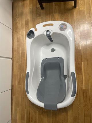 Bañera para bebés, diseñada para la comodidad y seguridad durante el baño. - Material resistente y fácil de limpiar. - Diseño ergonómico para recién nacidos. -Tiene unas pequeñas rajas en elcambiador pero yo le he tenido puesto un protector y perfecto. - Goma de desagüe incluida.