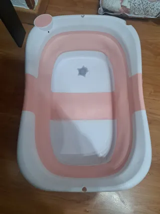 Bañera ergonómica para bebés con un práctico soporte plegable. Muy poco uso, está como nueva. Precio original 102,40 euros. - Diseño anatómico para mayor comodidad. - Soporte plegable para fácil almacenamiento y transporte. - Hay departamento para los productos de higiene. - Tiene un cacito extraíble para lavar la cabeza. - Tiene desagüe con el tubo. Hago descuento comprando varios productos del perfil.