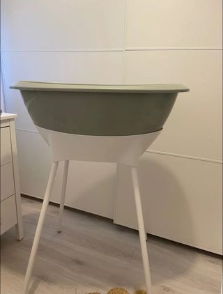 Bañera para bebé de la marca Luma, con un diseño moderno y funcional. - Patas estables para mayor seguridad. - Asiento para bañar a los recién nacidos - Las patas se ponen y quitan muy fácilmente Yo he usado la bañera sin patas también cuando mi hijo era más grande (con 2 años en adelante) en el suelo de la ducha y es muy cómoda. Le falta la goma porque se puso negra de la humedad. Yo la usaba metiéndola dentro de la ducha al completo y luego vaciaba sin goma después de ponerse fea. La goma en ferretería o LEROY Merlín seguro se compra una si necesitas. REGALO el cubo tommee tippe para pañales. Recogida en Armilla o Motril.