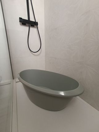Bañera Twistshake en muy buen estado. Modelo amplio, cómodo y seguro, pero demasiado grande para el espacio disponible. ✔️ Incluye soporte metálico plegable para mayor comodidad ✔️ 2 cojines reductores para recién nacidos, muy suave y envolvente ✔️ Color gris ✔️ Tapón de vaciado en la base para facilitar su uso (tubo de vaciado nuevo sin usar)
