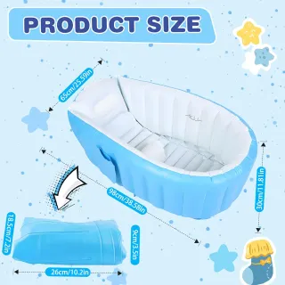 Bañera hinchable de color AZUL o ROSA ideal para el baño. Cuenta con una válvula de aire sellada de doble capa que garantiza un inflado rápido y sin esfuerzo, sin fugas de aire. Incorpora un diseño ergonómico curvo para brindarle el soporte y la protección adecuados durante el baño en esta bañera esencial para recién nacidos Base especialmente diseñada aísla del frío del suelo y garantiza que la bañera se mantenga firme y antideslizante durante su uso. Olvídate de las preocupaciones de que tu bebé se resbale o se sienta inseguro durante el baño. - Medidas: 98 x 65 x 28cm. TOTALMENTE NUEVO, IDEAL PARA REGALAR A TU PEQUE!!