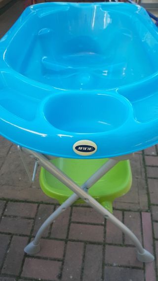 Hamaquita de baño con respaldo inclinado para ayudarte a mantener al bebé en una posición correcta y bañarlo cómodamente. Está como si se comprara nueva, conserva sus etiquetas.