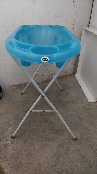 Bañera de plástico azul para bebés, con soporte plegable. - Color azul. - Incluye soporte.