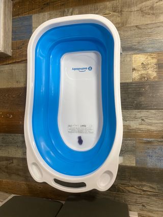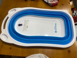 La Bañera Plegable azul para bebés es ideal tanto para bañeras como platos de ducha. Su diseño permite desplegarla y contraerla en tan solo unos segundos. Es perfecta para hogares con espacios reducidos o para llevar de viaje. Resulta tan compacta que podrás guardarla en cualquier rincón. Está en perfecto estado Tiene los tornillos por la parte de abajo un poco oxidados, se ve en la foto