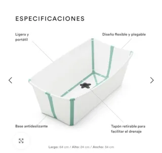 ¡El set de baño más completo y compacto! Bañera plegable Stokke Flexi Bath. • Bañera Plegable: Diseño premiado que ahorra espacio. Ideal para casa o viajes. • Soporte Elevador: Patas plegables muy estables para bañar al bebé cómodamente sin forzar la espalda. • Hamaca Recién Nacido: Accesorio ergonómico para mayor seguridad desde el día 1. • Estado: Buen estado. Presenta marcas oscuras en juntas de silicona por el uso (ver fotos), totalmente higienizada. Apta hasta los 4 años. ¡Calidad Stokke! #stokke #flexibath #bañera #bebe #puericultura