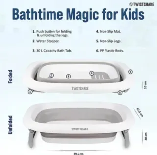 Bañera plegable Twistshake, de bebe y recién nacido para ducha. Baño portatil para niños. Antideslizante. Viene con almohadilla para comodidad de bebe. Capacidad 30L