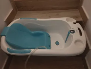 Vendo bañera para bebé en perfecto estado. Ideal para bebés de 7 a 16 meses. -Fabricada en Francia. -Capacidad máxima 13kg. -Incluye instrucciones. -Color blanco y gris. -Diseño cómodo y seguro para el bebé.