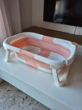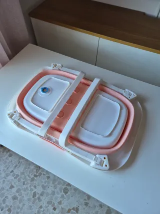 Bañera plegable para bebés, ideal para ahorrar espacio.