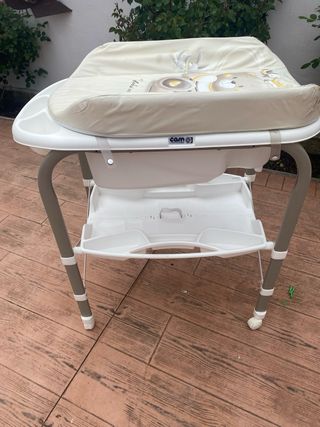 Vendo bañera cambiador de la marca CAM, en buen estado. Es perfecta para el baño y cambio del bebé. - Incluye bañera y cambiador. - Estructura de metal con ruedas. - Diseño ligero y fácil de usar. - Superficie del cambiador acolchada.
