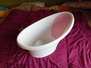 Bañera para bebé en perfecto estado, utilizada solo el primer mes. Es plegable y fácil de guardar. - Color rosa y blanco. - Diseño plegable. - Incluye termómetro digital.