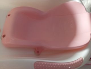 Bañera para bebé en perfecto estado. Es de color blanco y rosa, y tiene un diseño muy bonito. Incluye un accesorio para recién nacidos. - Ideal para bañar a bebés recién nacidos. - Incluye soporte para recién nacidos. - Material plástico resistente y fácil de limpiar.