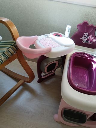 Preciosa estación de cambio Baby Nurse en color morado y blanco. Ideal para cuidar a tu bebé. - Incluye cambiador, bañera y trona. - Perfecto estado de conservación. - Diseño bonito y funcional.