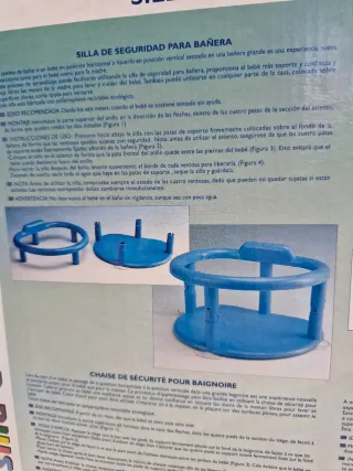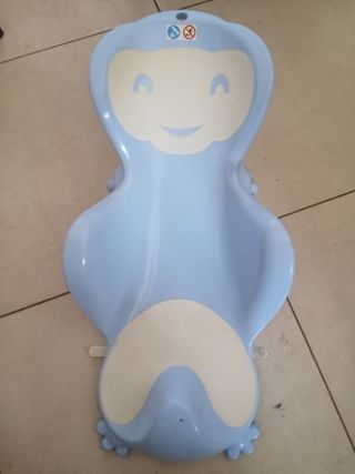 Bañera para bebé en buen estado. Es de color azul y blanco, con forma de sillita. - Ideal para bañar a bebés de forma segura y cómoda. - Material plástico resistente y fácil de limpiar. - Diseño ergonómico que se adapta al cuerpo del bebé.