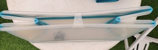 Práctica bañera para bebes y niños hasta 6 años. Tiene tapón, y lengüeta para cerrar y que ocupe menos espacio