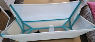 Bañera Stokke Flexibath en perfecto estado, lista para usar. Incluye soporte y adaptador para recién nacido. Tapón con control de temperatura. Tubo de desagüe para una mayor comodidad a la hora de vaciar. Bañera plegable y fácil de guardar. Soporte estable y seguro. Ideal para bañar a tu bebé con comodidad y seguridad.