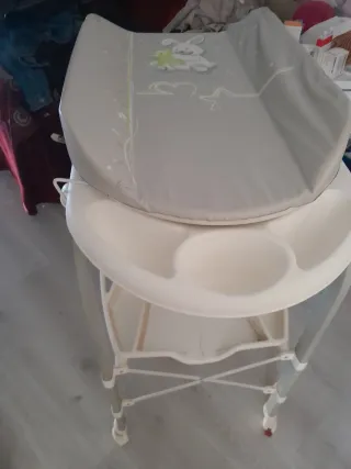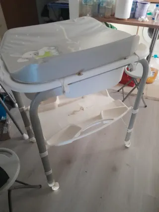 Se vende bañera- cambiador de bebé en buen estado. Lo único que tiene roto recientemente es el plástico superior pero se puede cambiar. Gran capacidad de almacenaje en bandeja inferior.