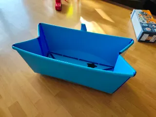 Bañera plegable para bebés de la marca Stokke. Diseñada para facilitar el baño del bebé en casa o de viaje. - Color azul. - Diseño plegable para un fácil almacenamiento y transporte.