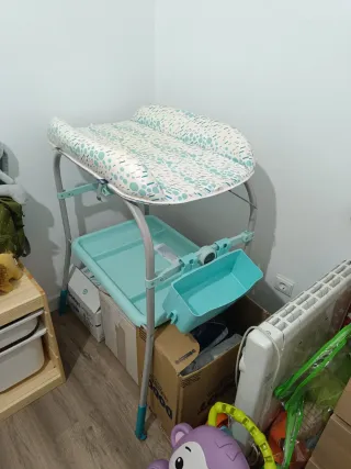 Cambiador de bebé en perfecto estado, como nuevo. Ideal para el cuidado diario del bebé. - Estructura resistente y estable. - Tina incorporada para el baño. - Bandeja inferior para accesorios.