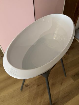 Bañera plegable Stokke para bebés, diseñada para facilitar el baño. - Diseño plegable para un fácil almacenamiento. - Incluye patas para mayor estabilidad. - Materiales de calidad. - las patas un poco oxidadas pero cumplen perfectamente su función.