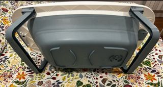 Cambiador de bebé con bañera incorporada y bandeja inferior.Flip Flop. - Estructura metálica. - Bañera de plástico color crema. - Bandeja de plástico color rojo. Sólo tiene rasgado el plástico del cambiador pero con una funda tipo sábana como nuevo,por eso el precio por lo demás está estupendo.