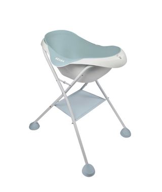 Bañera para bebé de la marca Beaba, diseñada para la comodidad y seguridad. - Color azul y blanco. - Estructura plegable con soporte.