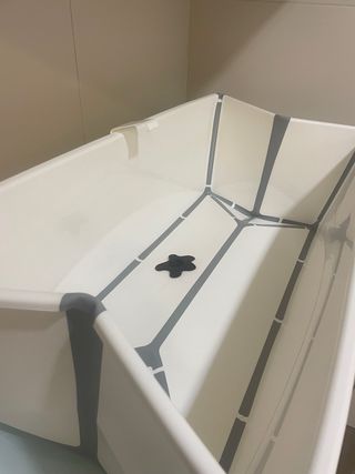 Bañera plegable Stokke Flexi Bath con soporte para recién nacidos. - Diseño plegable para fácil almacenamiento y transporte. - Soporte ergonómico para mayor comodidad del bebé. - Materiales duraderos y seguros. solo tiene la pequeña manchita en una esquina que no afecta nada a su funcionalidad