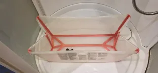 Bañera plegable para bebé, utilizada una sola vez y en excelente estado. Su diseño combina blanco y rosa. - Material: Plástico. - Color: Blanco y rosa. - Plegable para fácil almacenamiento.