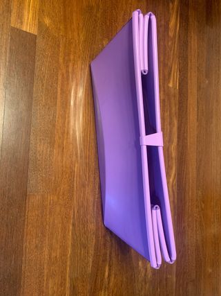 Bañera plegable para bebés en color lila. Es práctica y fácil de guardar. - Diseño plegable para ahorrar espacio. - Material resistente y seguro. - Incluye tapón para vaciado.