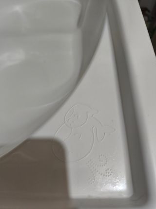 Bañera para bebe desde el momento del nacimiento. Esta en perfecto estado, le falta unicamente la goma del asiento de cuando el bebe ya se sienta, pero no es necesaria, mi hijo se bañaba sin ella. El agujero de la salida de agua esta tapado con silicona para que no se salga el agua, ya que el niño puede quitar el tapon.