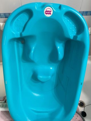 Bañera para bebé de la marca OK Baby, en color azul. Está en buen estado, aunque tiene algunas marcas de uso. - Ideal para bañar a bebés y recién nacidos. - Fabricada en plástico resistente. - Incluye soporte para facilitar el baño. La bañera se recoge en Taradell (Bcn). NO HAGO ENVIOS !!