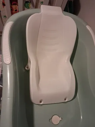 Bañera plegable para bebé, ideal para ahorrar espacio. Está en muy buen estado y es fácil de limpiar. - Plegable para facilitar el almacenamiento. - Incluye adaptador para recién nacidos. - Material plástico resistente y ligero.