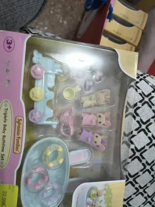 Set de baño para bebés Sylvanian Families. - Incluye tres figuras de conejitos bebés. - Accesorios de baño como bañera, flotadores y patito. - Ideal para recrear momentos de juego y cuidado.