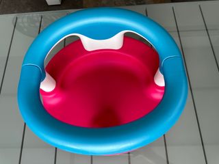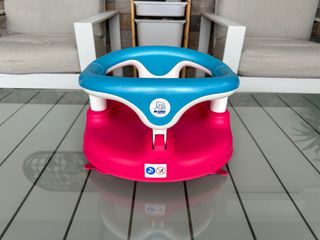 Asiento para bañera para bebé de hasta 18 meses. Soporta 15kg aproximadamente. Como nuevo. Color fucsia-azul. Unisex. Sin BPA.